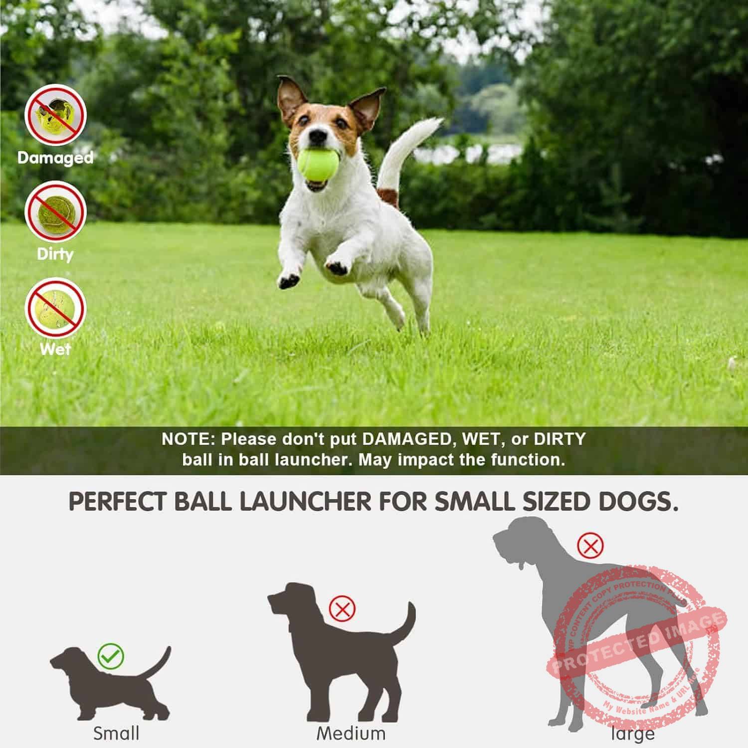 • This model is designed specifically for small dogs since it uses 2-inch mini tennis balls. Larger breeds may accidentally chew or swallow the smaller balls, so this launcher is best for smaller pets like Poodles, Yorkies, Dachshunds, and similar-sized dogs.