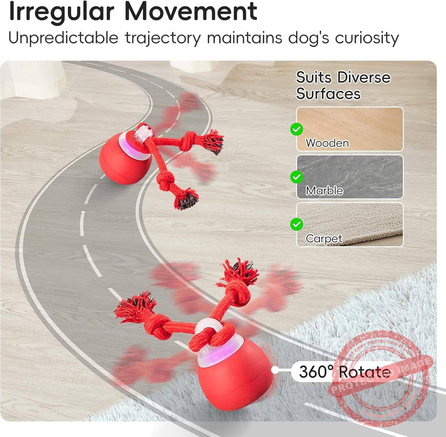 The motorized ball moves and bounces unpredictably, keeping dogs engaged for hours. Its attached rope adds an exciting twist—your dog can chase, tug, and chew while enjoying interactive play that encourages healthy exercise and reduces boredom.
